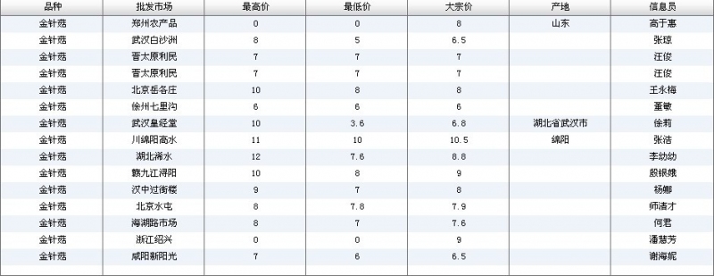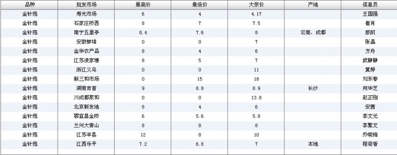 2012.04.01 金针菇全国批发市场价格行情 来源:中国农业信息网