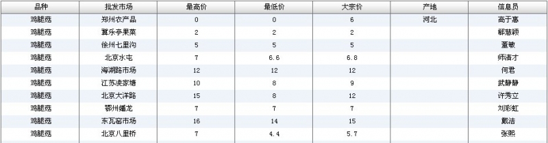 2012.04.01 鸡腿菇全国批发市场价格行情 来源:中国农业信息网