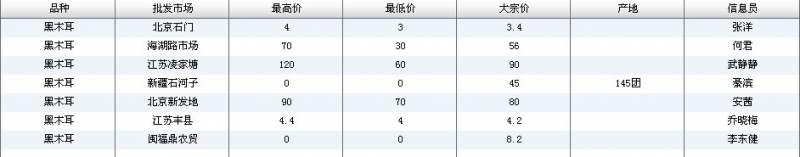 2012.04.01 黑木耳全国批发市场价格行情 来源:中国农业信息网