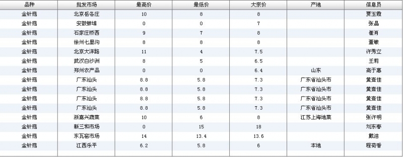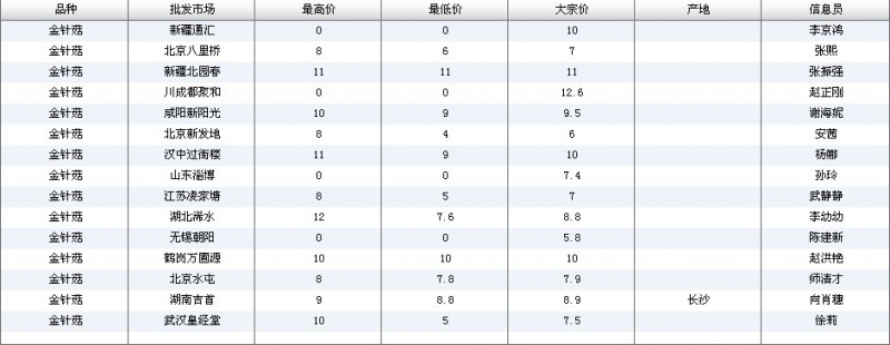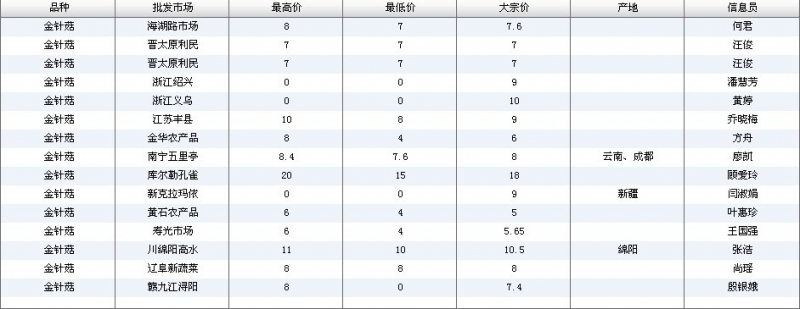 2012.04.05 金针菇全国批发市场价格行情 来源:中国农业信息网