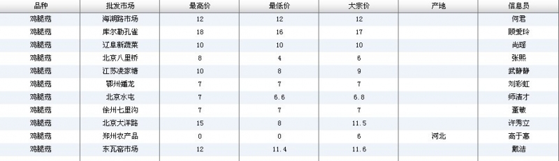 2012.04.05 鸡腿菇全国批发市场价格行情 来源:中国农业信息网