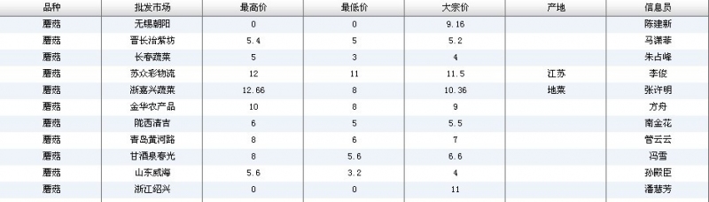 2012.04.06 蘑菇全国批发市场价格行情 来源:中国农业信息网