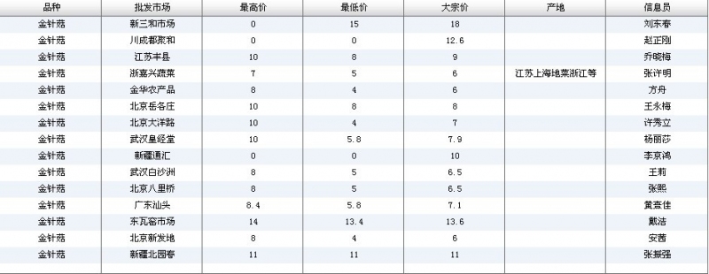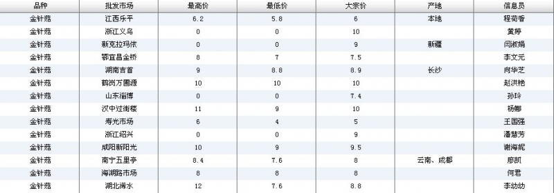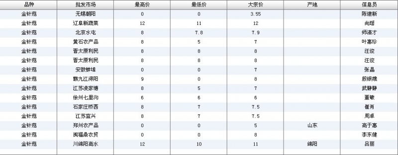 2012.04.06 金针菇全国批发市场价格行情 来源:中国农业信息网