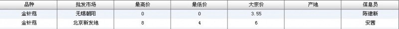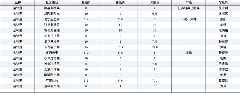 2012.04.07 金针菇全国批发市场价格行情 单位(元/公斤) 来源:中国农业信息网