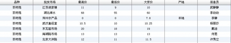 2012.04.07 茶树菇全国批发市场价格行情 单位(元/公斤) 来源:中国农业信息网