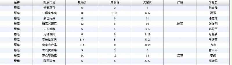 2012.04.09 蘑菇全国批发市场价格行情 单位(元/公斤) 来源:全国农产品批发市场价格信息网