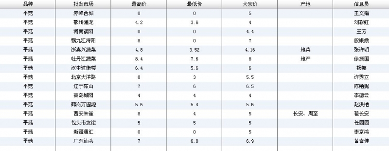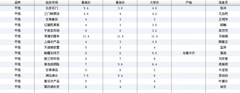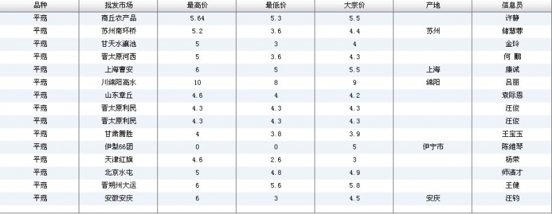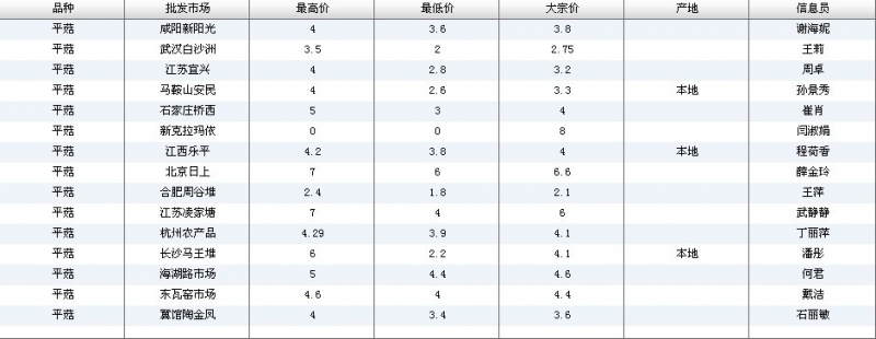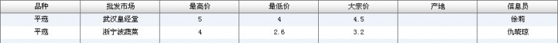 2012.04.09 平菇全国批发市场价格行情 单位(元/公斤) 来源:全国农产品批发市场价格信息网