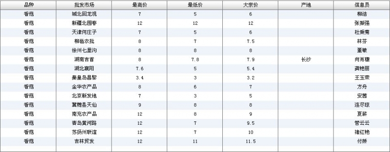 2012.04.09 香菇全国批发市场价格行情 单位(元/公斤) 来源:全国农产品批发市场价格信息网