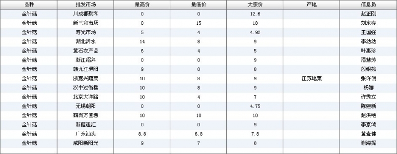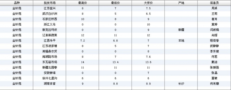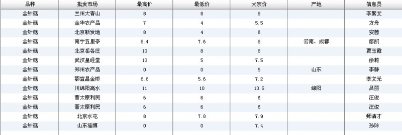 2012.04.09 金针菇全国批发市场价格行情 单位(元/公斤) 来源:全国农产品批发市场价格信息网