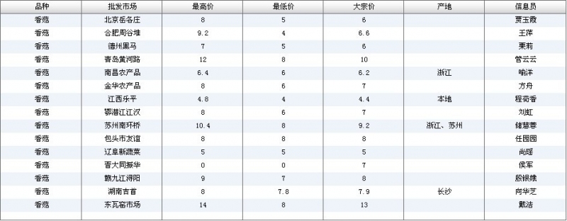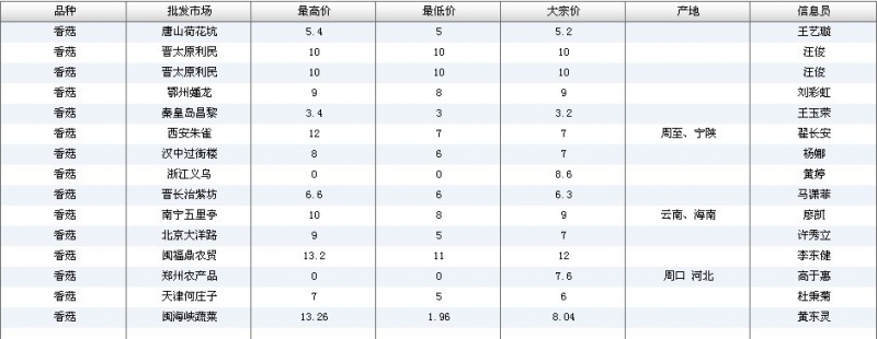 2012.04.10 香菇全国批发市场价格行情 单位(元/公斤) 来源:全国农产品批发市场价格信息网