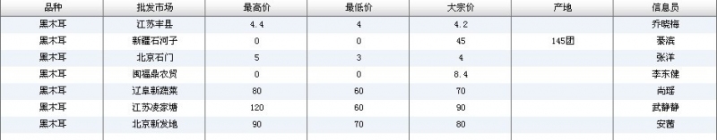 2012.04.10 黑木耳全国批发市场价格行情 单位(元/公斤) 来源:全国农产品批发市场价格信息网