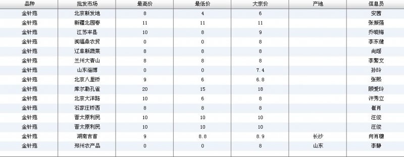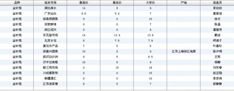 2012.04.11 金针菇全国批发市场价格行情 单位(元/公斤) 来源:全国农产品批发市场价格信息网