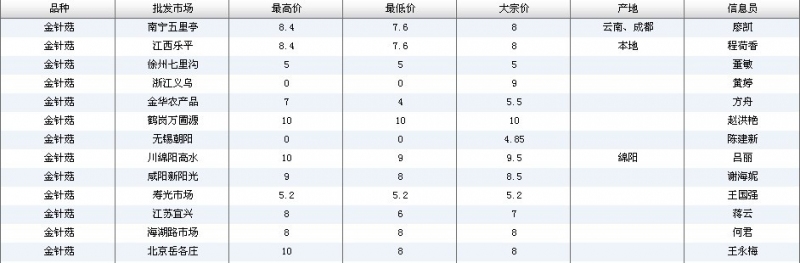2024年3月8日全国主要批发市场金针菇价格行情