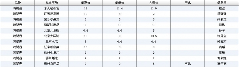 2012.04.13 鸡腿菇全国批发市场价格行情 单位(元/公斤) 来源:全国农产品批发市场价格信息网