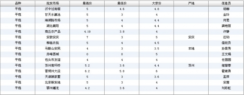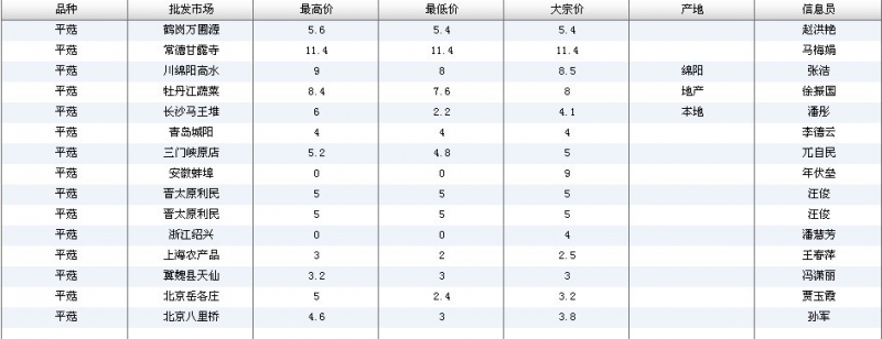 2012.04.14 平菇全国批发市场价格行情 单位(元/公斤) 来源:全国农产品批发市场价格信息网