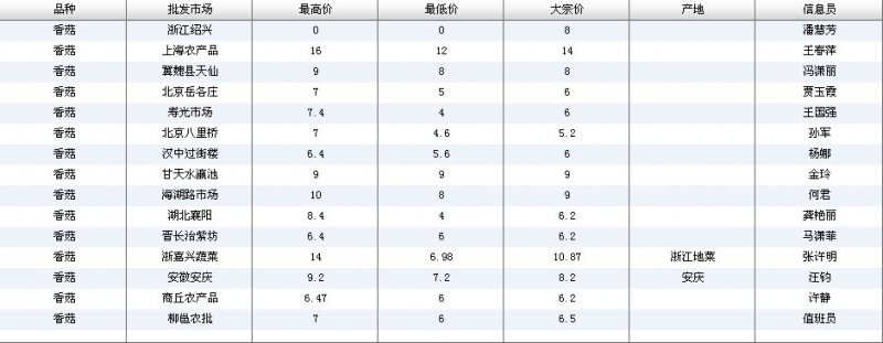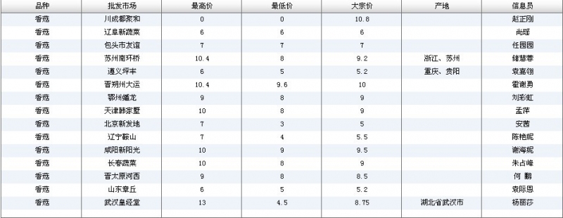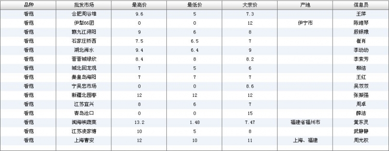 2012.04.14 香菇全国批发市场价格行情 单位(元/公斤) 来源:全国农产品批发市场价格信息网