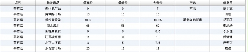2024年3月18日全国主要批发市场茶树菇价格行情