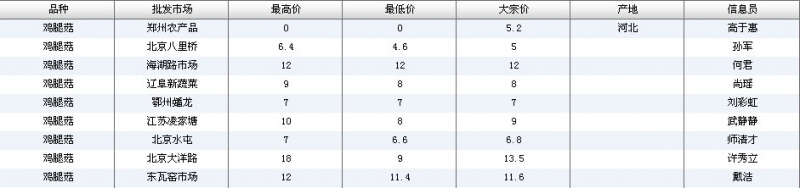 2012.04.14 鸡腿菇全国批发市场价格行情 单位(元/公斤) 来源:全国农产品批发市场价格信息网