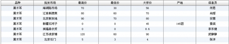 2012.04.14 黑木耳全国批发市场价格行情 单位(元/公斤) 来源:全国农产品批发市场价格信息网