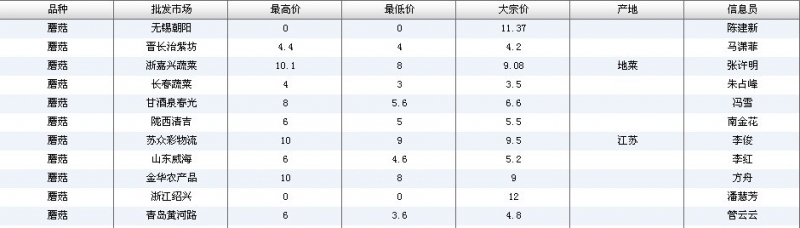 2012.04.16 蘑菇全国批发市场价格行情 单位(元/公斤) 来源:全国农产品批发市场价格信息网