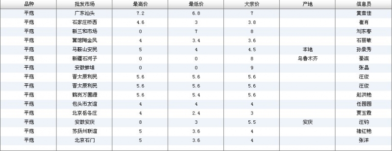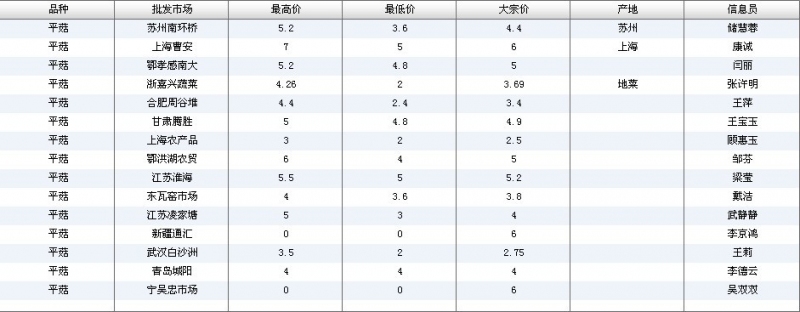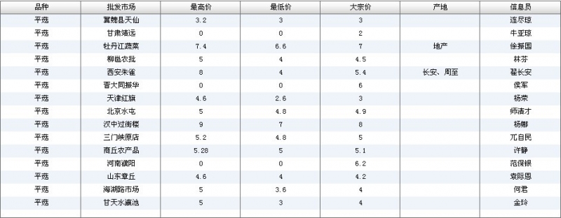 2012.04.16 平菇全国批发市场价格行情 单位(元/公斤) 来源:全国农产品批发市场价格信息网