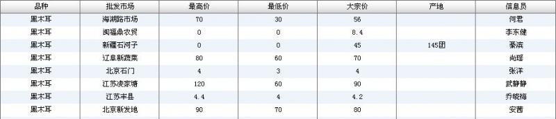 2012.04.16 黑木耳全国批发市场价格行情 单位(元/公斤) 来源:全国农产品批发市场价格信息网