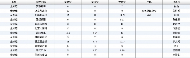 2012.04.17 金针菇全国批发市场价格行情 单位(元/公斤) 来源:全国农产品批发市场价格信息网