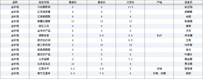 2024年3月8日全国主要批发市场金针菇价格行情