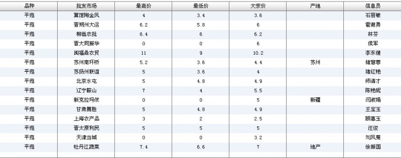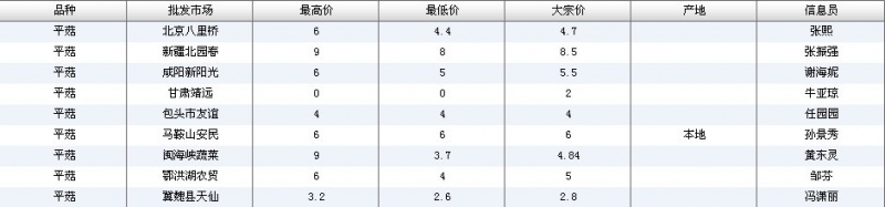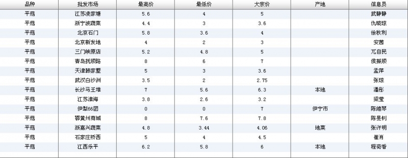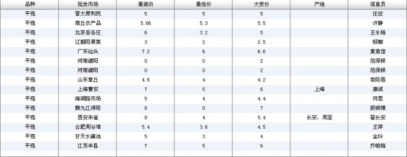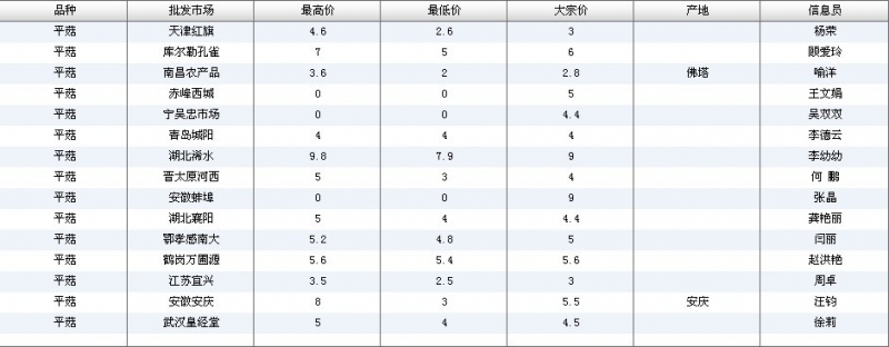 2012.04.19 平菇全国批发市场价格行情 单位(元/公斤) 来源:全国农产品批发市场价格信息网