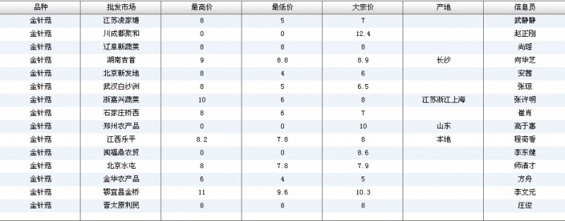 2024年3月8日全国主要批发市场金针菇价格行情