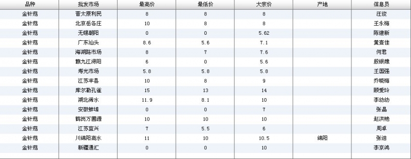 2012.04.19 金针菇全国批发市场价格行情 单位(元/公斤) 来源:全国农产品批发市场价格信息网