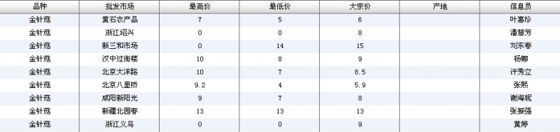 2012.04.19 金针菇全国批发市场价格行情