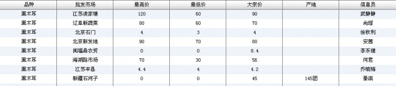 2012.04.19 黑木耳全国批发市场价格行情 单位(元/公斤) 来源:全国农产品批发市场价格信息网