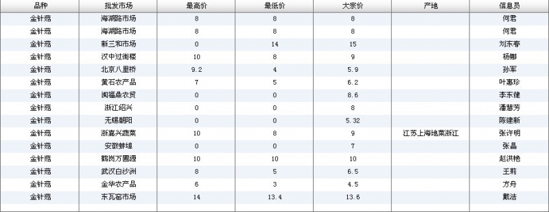 2024年3月8日全国主要批发市场金针菇价格行情