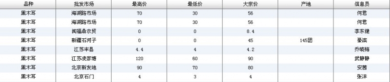 2022年3月18日黑木耳全国批发市场行情