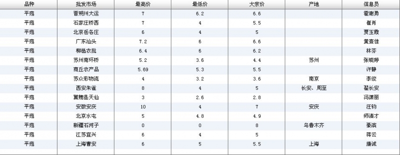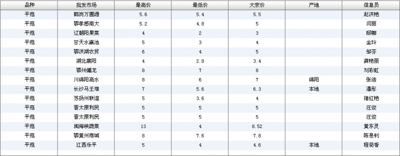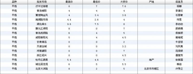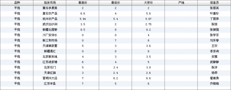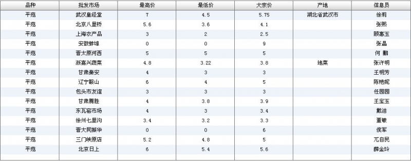 2012.04.23 平菇全国批发市场价格行情 单位(元/公斤) 来源:全国农产品批发市场价格信息网