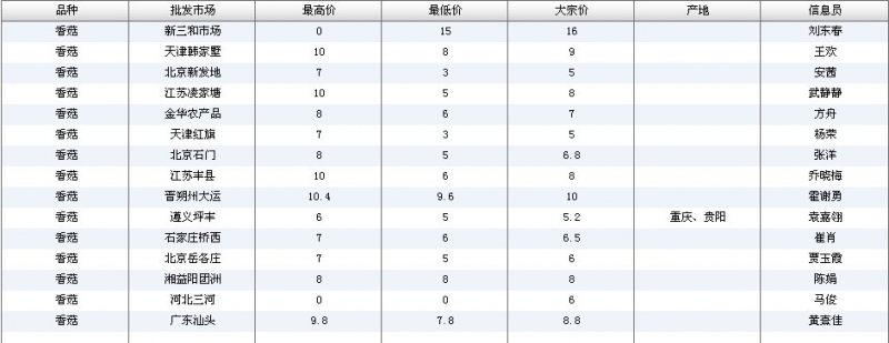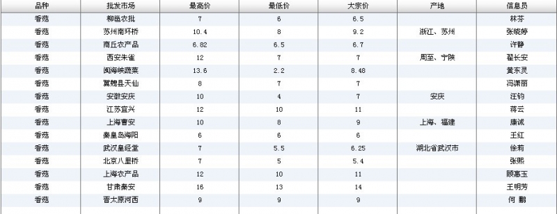 2012.04.23 香菇全国批发市场价格行情 单位(元/公斤) 来源:全国农产品批发市场价格信息网