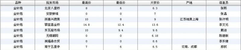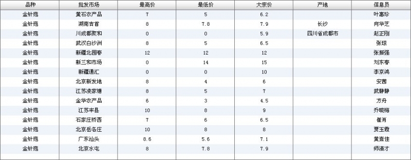 2024年3月8日全国主要批发市场金针菇价格行情
