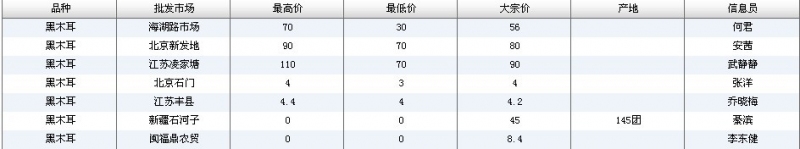 2012.04.23 黑木耳全国批发市场价格行情 单位(元/公斤) 来源:全国农产品批发市场价格信息网
