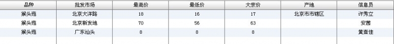 2012.04.23 猴头菇全国批发市场价格行情 单位(元/公斤) 来源:全国农产品批发市场价格信息网