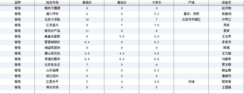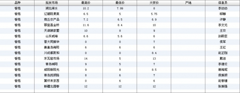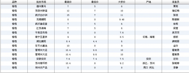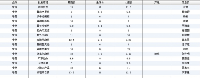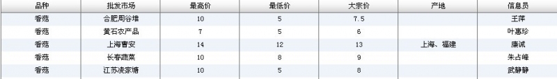 2012.04.24 香菇全国批发市场价格行情 单位(元/公斤) 来源:全国农产品批发市场价格信息网