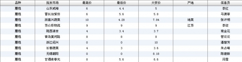 2018年10月11日蘑菇全国批发市场行情