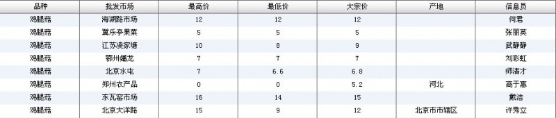 2012.04.25 鸡腿菇全国批发市场价格行情 单位(元/公斤) 来源:全国农产品批发市场价格信息网