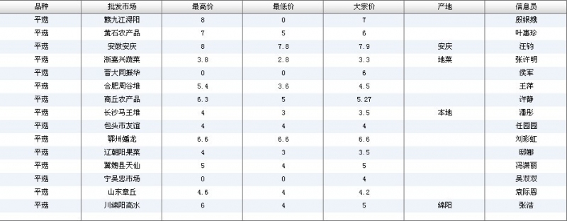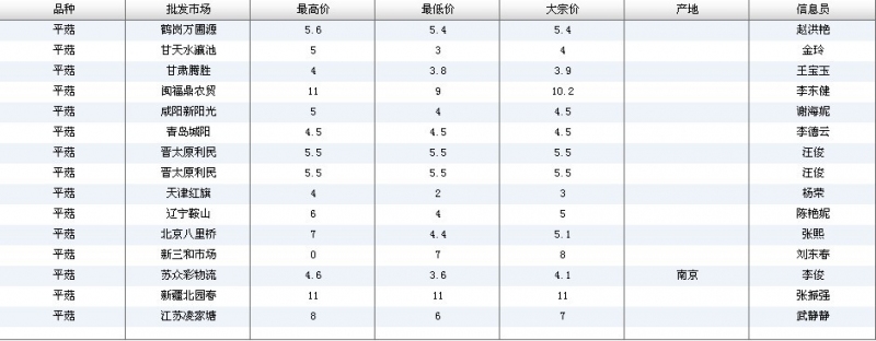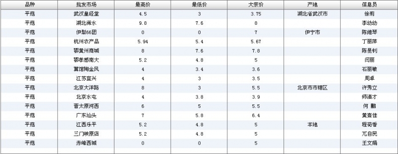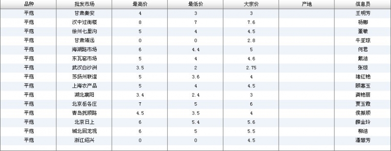 2012.04.26 平菇全国批发市场价格行情 单位(元/公斤) 来源:全国农产品批发市场价格信息网