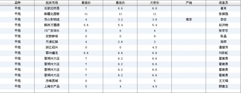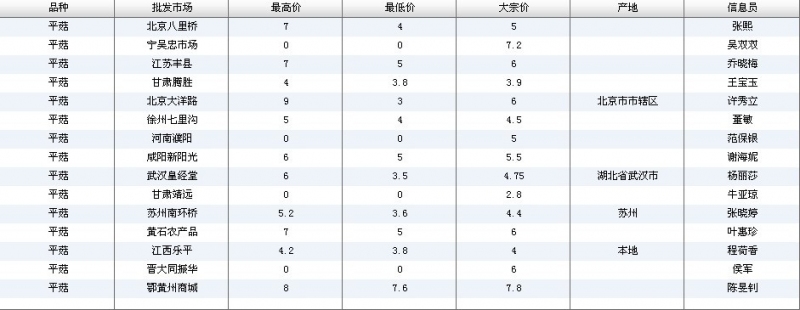 2024年3月8日全国主要批发市场平菇价格行情