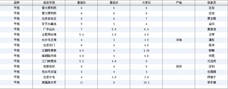 2012.04.27 平菇全国批发市场价格行情 单位(元/公斤) 来源:全国农产品批发市场价格信息网