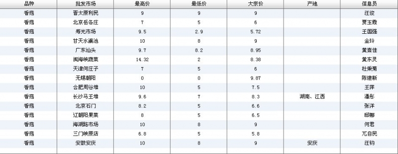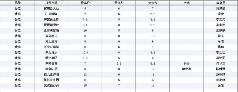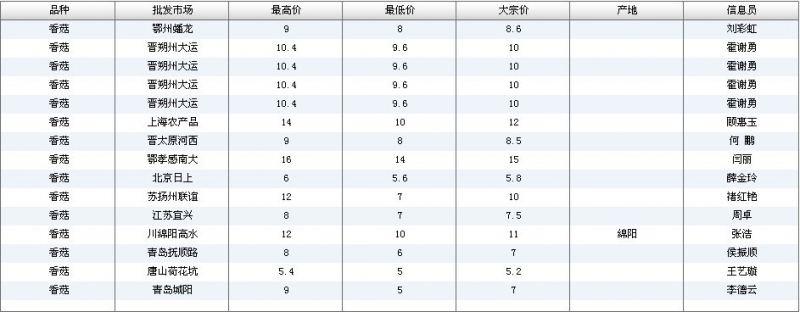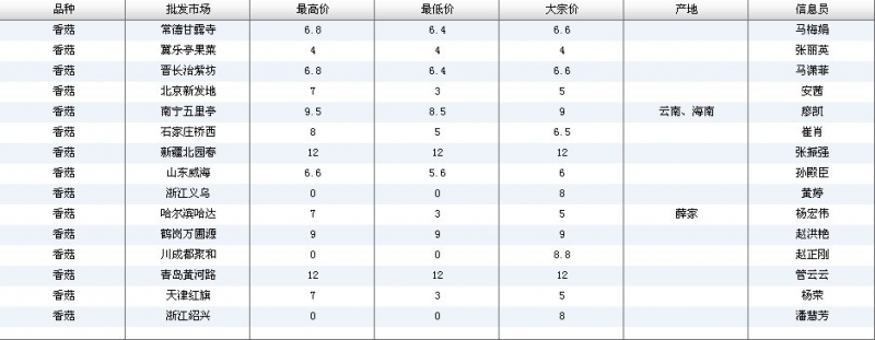 2012.04.27 香菇全国批发市场价格行情 单位(元/公斤) 来源:全国农产品批发市场价格信息网