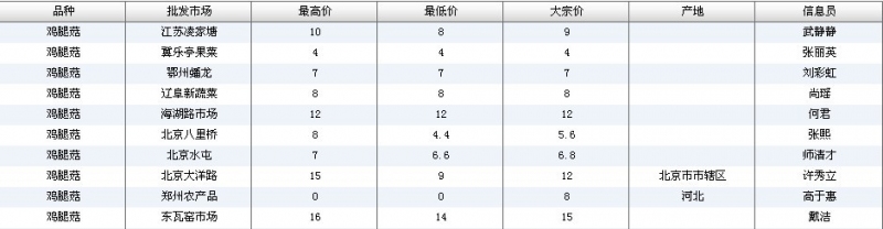 2012.04.27 鸡腿菇菇全国批发市场价格行情 单位(元/公斤) 来源:全国农产品批发市场价格信息网