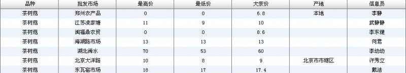 2024年3月18日全国主要批发市场茶树菇价格行情