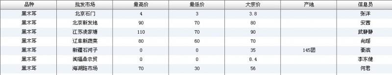 2022年3月18日黑木耳全国批发市场行情